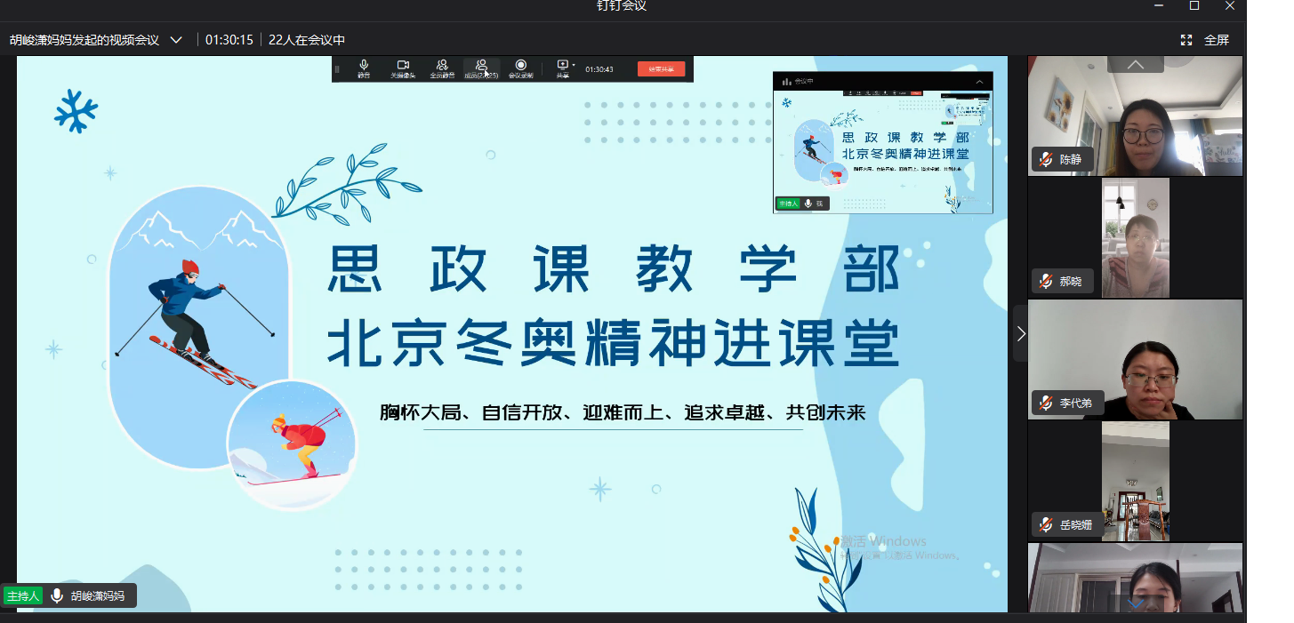 本次冬奧會,既是一場展現競技實力、傳遞中華文化的盛會,更是一場弘揚拼搏精神、踐行和平理念的盛會。講清冬奧精神、講好冬奧故事,以本次具有集體記憶的盛會為橋梁,繼續在全體學生心里播種真善美的種子,是對思政課教學部全體思政教師把握時政能力的考驗,也是對習近平總書記對全體思政教師殷殷囑托的生動實踐。